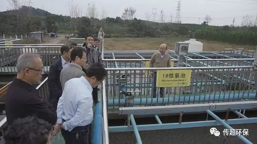 传超环保科技项目负责人在工程现场为各位专家详细介绍了工艺流程与工艺特点,各位专家对该工程工艺表现出浓厚的兴趣。在仔细询问运行状况与处理成本后,各位专家对该工程给予了高度评价,同时表示:“能将猪场废水做到7块钱每吨本身就说明了该技术的先进性。”